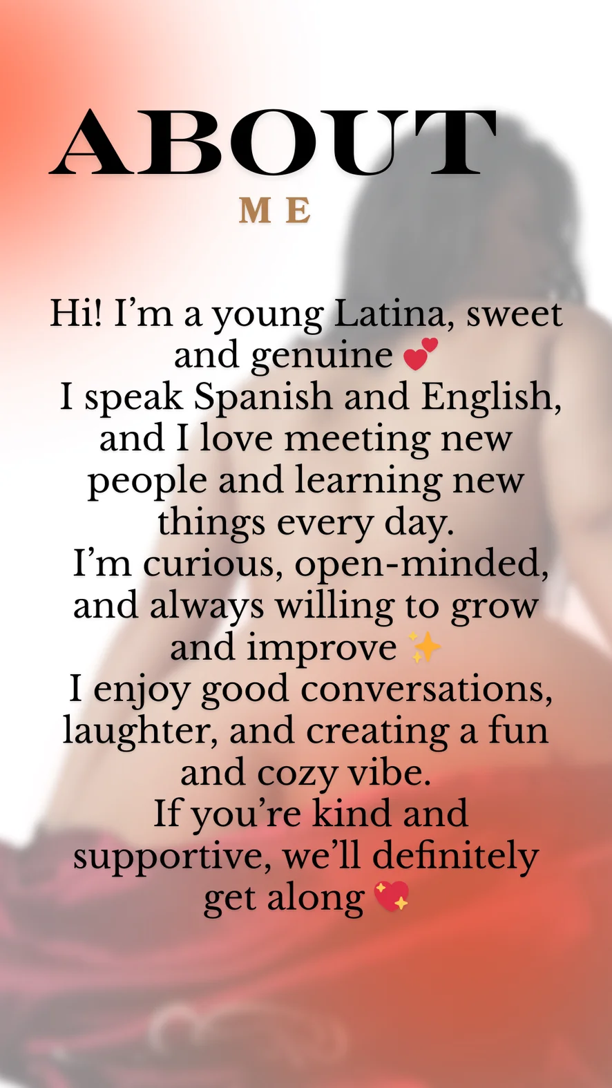 I am a Latin brunette girl, sweet and very cute, with a tender vibe that will make you feel comfortable from the first moment. I love to smile, talk and connect naturally 💕